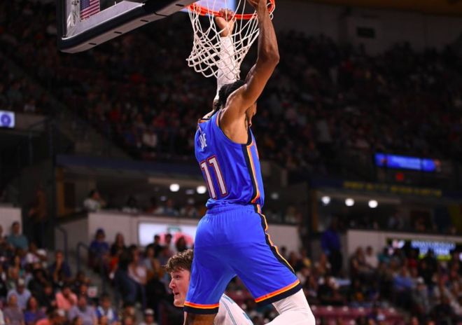 沒有亞歷山大、傑倫-威廉姆斯和霍姆格倫,甚至卡魯索、哈滕和多爾特也都沒有出戰(zhàn),可就算是這樣雷霆依然展現(xiàn)出強(qiáng)大的陣容深度,每個(gè)球員上來(lái)都能得分。全隊(duì)飆進(jìn)20記三分,送出瞭33次助攻,全面壓制對(duì)面的黃蜂。