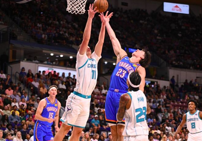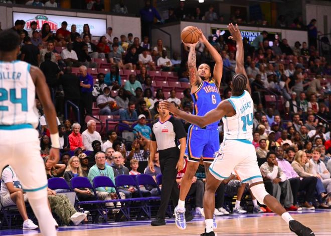北京時(shí)間10月6日,NBA季前賽繼續(xù)展開,衛(wèi)冕冠軍雷霆對(duì)陣黃蜂。本場(chǎng)比賽雷霆首發(fā)五人全都缺席,可上來(lái)他們狀態(tài)十分火熱,兩隊(duì)防守強(qiáng)度也不大,維金斯幫助球隊(duì)占據(jù)主動(dòng),半場(chǎng)領(lǐng)先13分;下半場(chǎng)雷霆延續(xù)火熱的狀態(tài),完全壓制著黃蜂,將分差拉開到20分以上。最終,雷霆135-114大勝黃蜂,取得瞭季前賽的開門紅。
