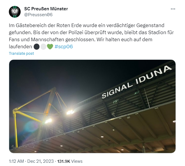 球場出現(xiàn)不明爆炸物:明斯特VS多特2隊(duì)德丙比賽被迫推遲