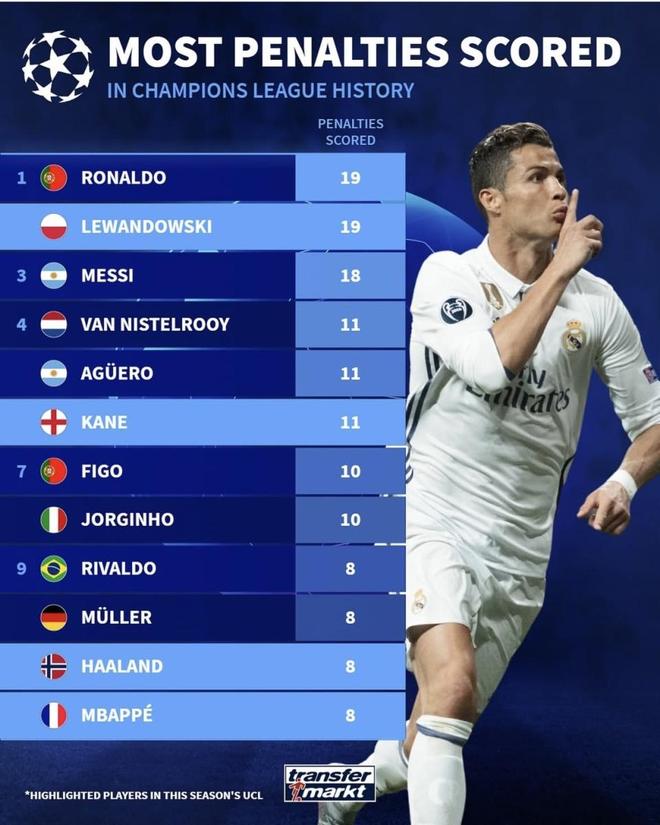 歐冠點(diǎn)球真相:德轉(zhuǎn)發(fā)布?xì)W冠點(diǎn)球排名!C羅點(diǎn)球數(shù)最多但占比最低