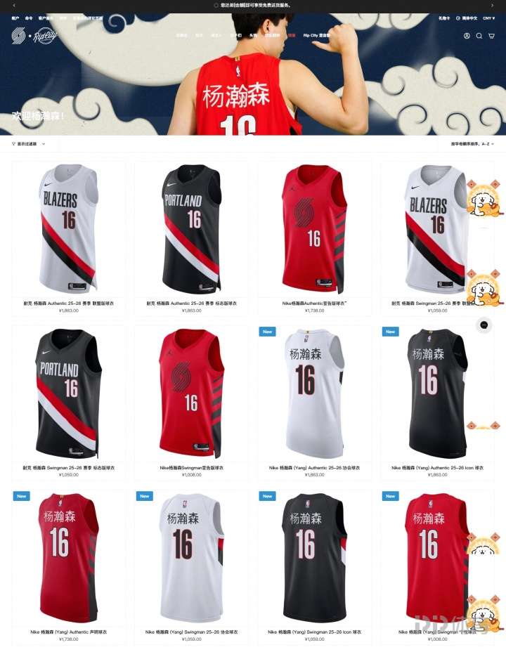 近日,開拓者官方網(wǎng)店上架了楊瀚森的中文版球衣。