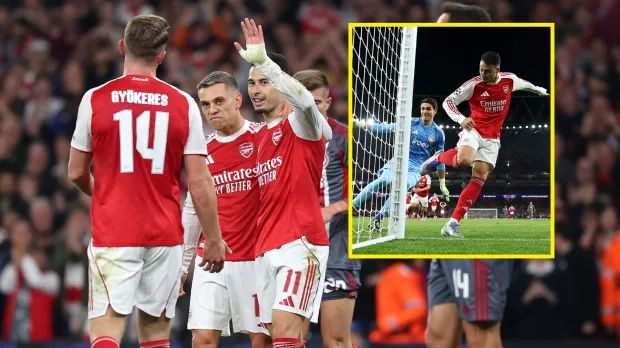 2-0!馬丁內(nèi)利薩卡破門 阿森納歐冠兩連勝0丟球 加布里埃爾傷退