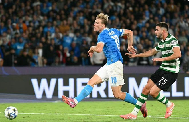 梅開二度,霍伊倫當(dāng)選那不勒斯vs葡體全場(chǎng)最佳球員