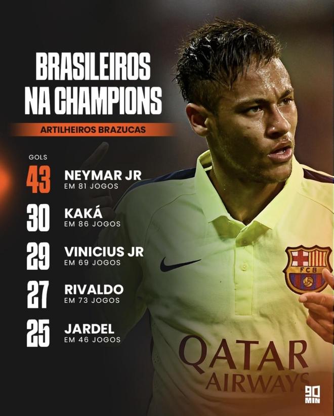 場均進球:賈德爾≈內馬爾 > 維尼修斯 > 里瓦爾多 > 卡卡