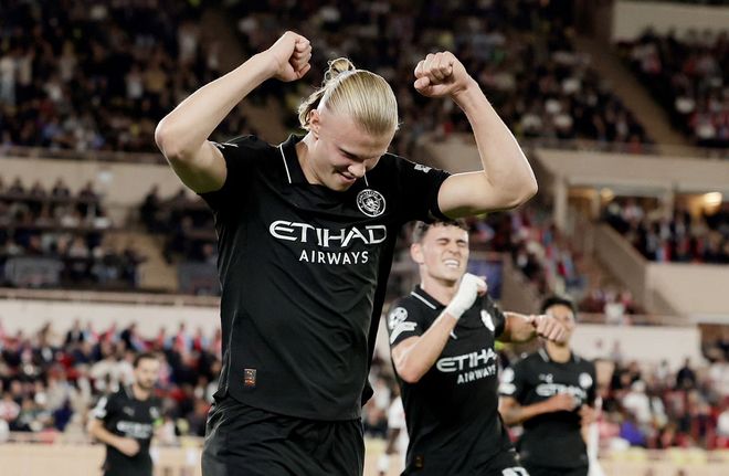 哈蘭德梅開二度,一戰(zhàn)造2大神跡!摩納哥點球絕平,主場2-2曼城