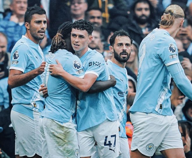 本場比賽,曼城派出了最強(qiáng)陣容,哈蘭德出任中鋒,羅德里、B席、賴因德斯、福登、多庫在其身后,多納魯馬擔(dān)任首發(fā)門將。